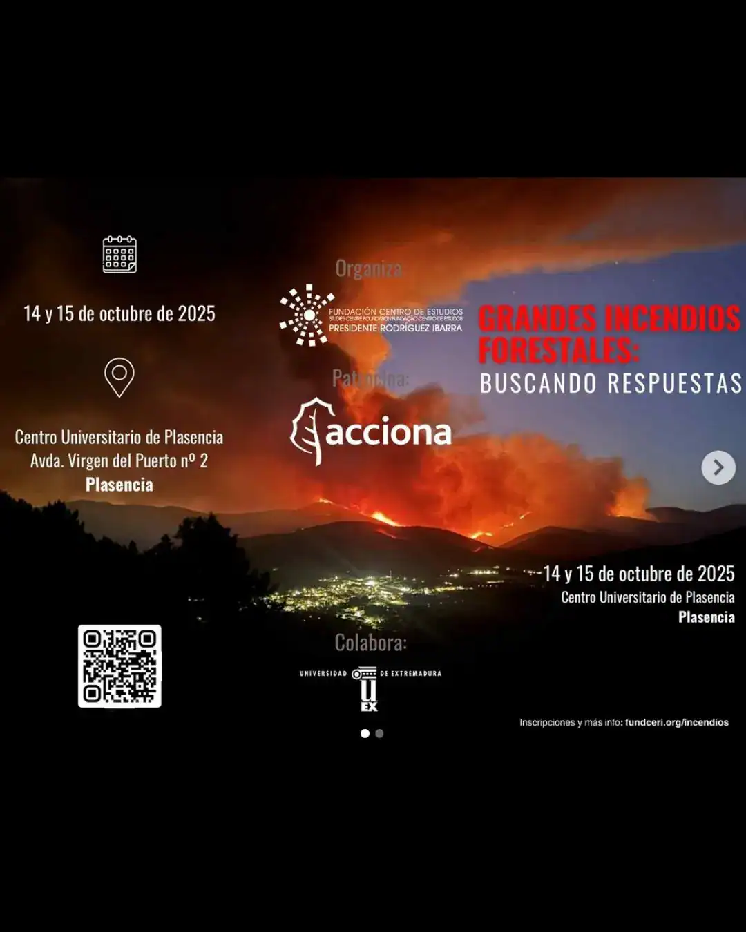 🔥 Finalmente, miembros del proyecto asistieron como oyentes a las jornadas “Grandes Incendios Forestales: Buscando Respuestas”, celebradas en octubre en el Centro Universitario de Plasencia, un espacio de reflexión científica y técnica sobre la gestión del fuego en los paisajes forestales.